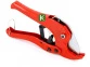 надежный механизм для точной резки толстостенных пластиковых труб под прямым углом без деформации, фиксатор на рукоятке удерживает ножницы в транспортном положении, оптимальная конструкция зубчатой рейки и ножа способствует наиболее точной передаче усилия и управления подачей ножа